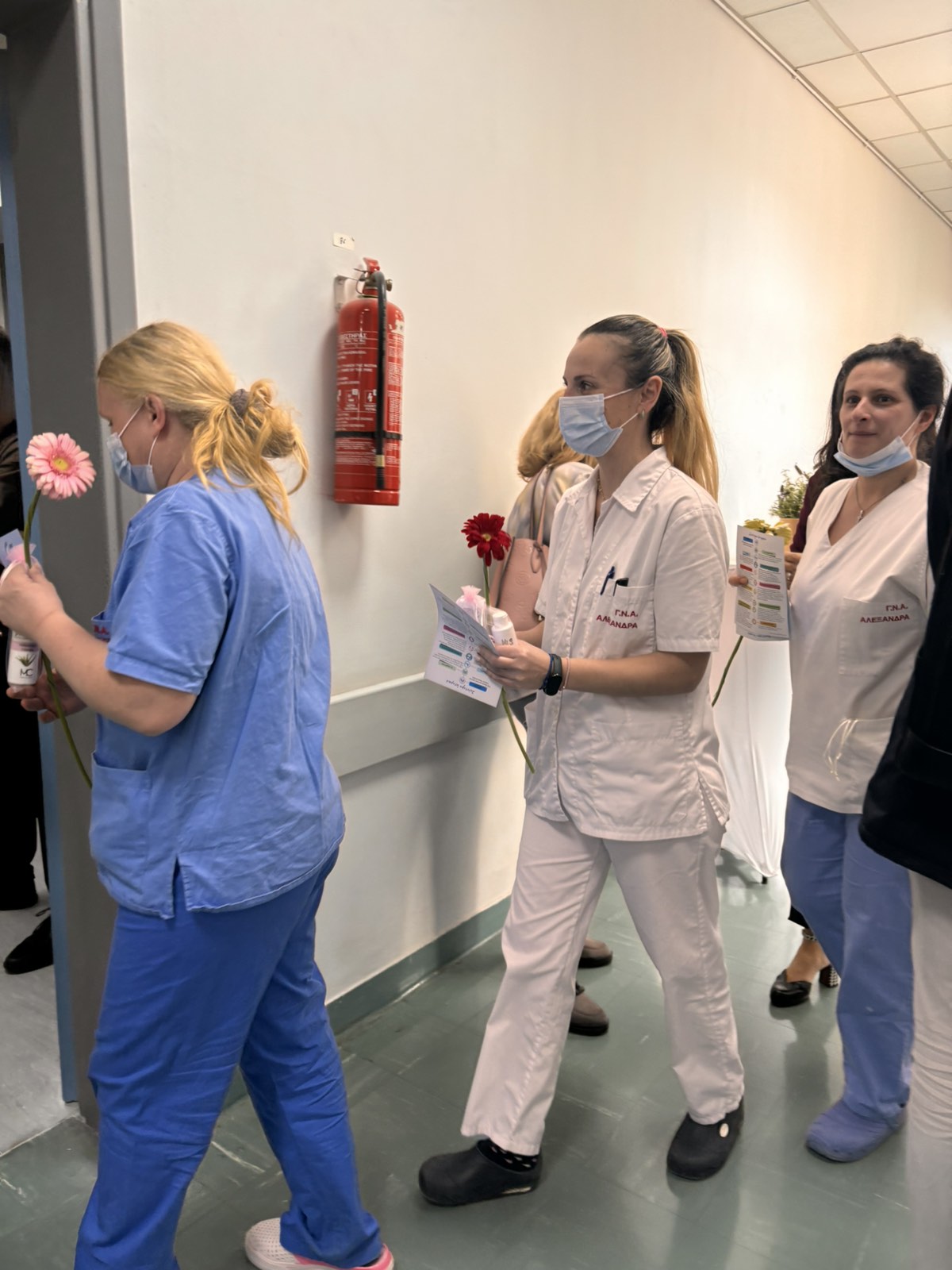 Πριν από την εκδήλωση, τα μέλη και οι εθελοντές της Ελληνικής Αντικαρκινικής Εταιρείας πρόσφεραν δώρα και λουλούδια στις ασθενείς και στο προσωπικό του νοσοκομείου, γιορτάζοντας μαζί την ημέρα αυτή.